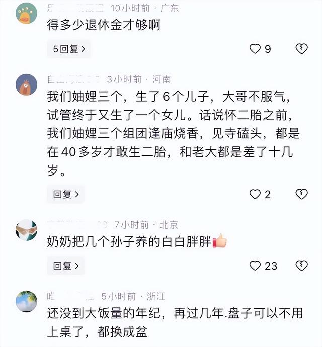 有的网友表示羡慕奶奶有四个孙子陪伴的幸福生活;有的网友则担心奶奶的身体能否承受得住这样的“甜蜜负担”;还有的网友调侃道:“为什么你们家没有女儿?是不喜欢吗?”
