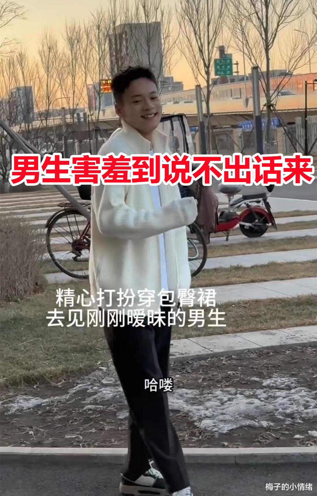 女孩打完招呼后,男生也鼓足勇气问出了心中的疑虑,想知道她为什么今天要这样穿。