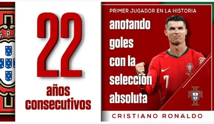 此外,40岁的C罗已经连续22年为国家队取得进球,同样是世界足坛首位达成这一里程碑的球员。