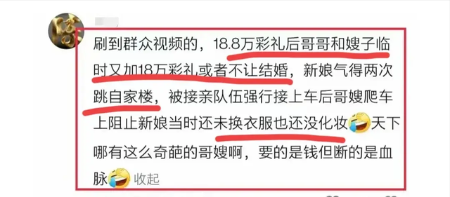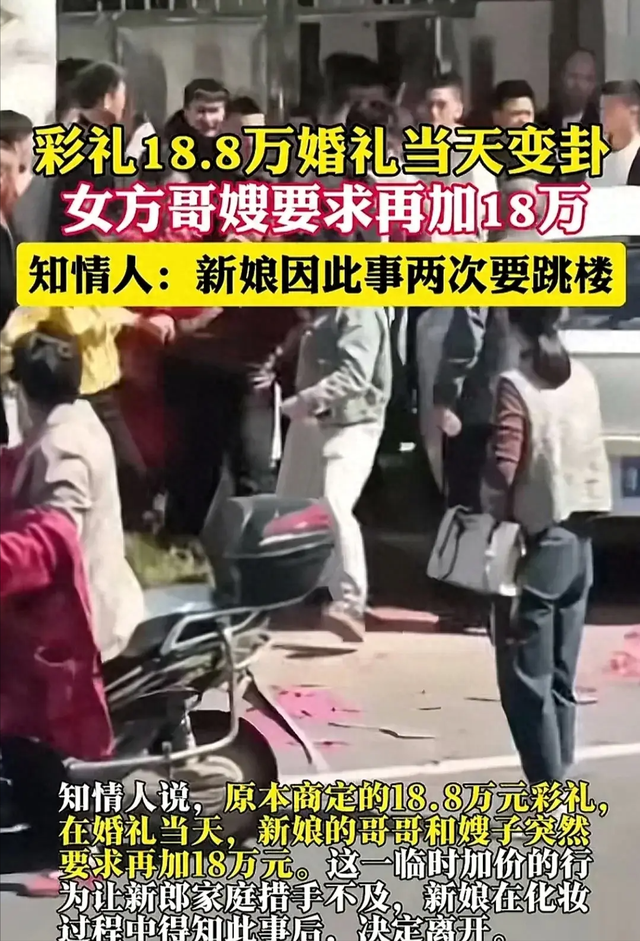 正当人都好奇的时候,才突然发现这是临时变卦多要18万,早在之前就已经给了18.8万彩礼了!