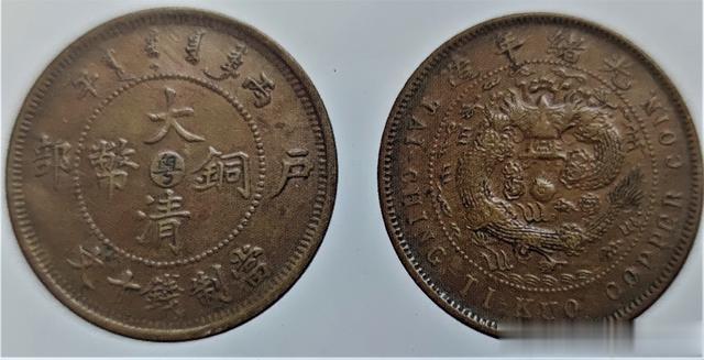 戊申类:正面为戊申,背面为光绪,但此币有背面为宣统的错版币