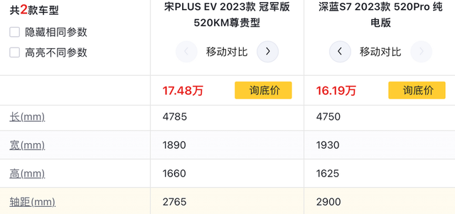 智能配置对比:深蓝S7纯电版更有诚意,宋PLUS EV冠军版表现常规