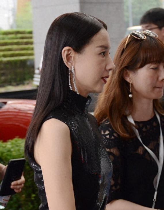 但是这张路人拍摄的生图里,简直和精修图的她判若两人。油光发亮的额头,松松垮垮的皮肤,老气横秋,十足一个大妈!
