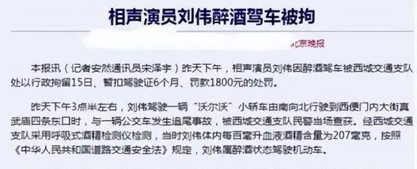 从“阶下囚”到演员的自我救赎2006年,刘伟酒驾撞了公交车,被警察抓了,关了15天。这件事让他又一次成了大家讨论的焦点,以前被称为“相声奇才”的他,现在却成了“阶下囚”,大家都在议论纷纷。