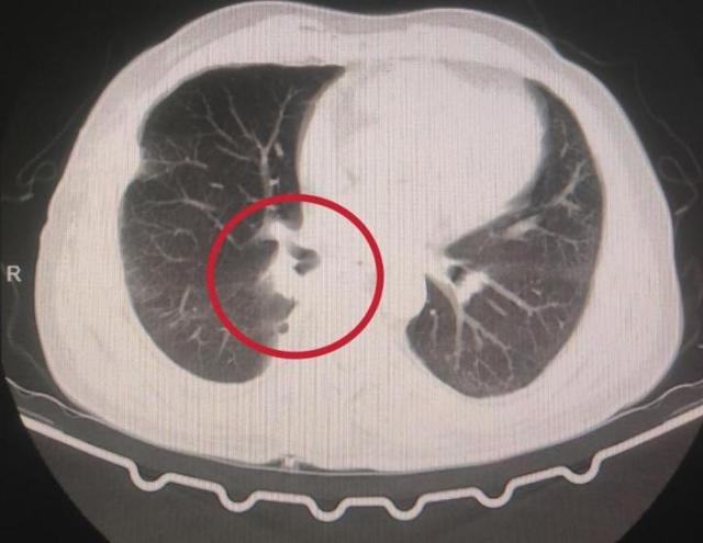 术后一个月时,患者突然出现打嗝、心率加快,感胸闷、气促、心悸等不适症状,经湖南旺旺医院胸外科胡邦主任查看患者,怀疑支气管残端瘘,因残端瘘风险极高,建议立即住院并予以胸腔闭式引流减压排气及引流治疗。