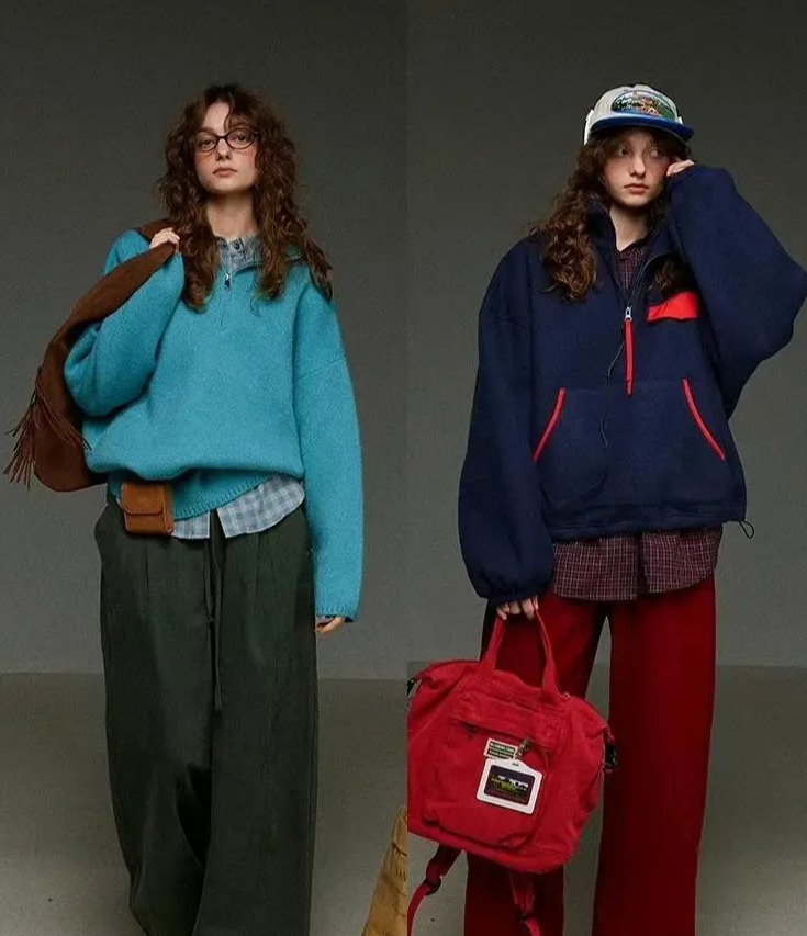 如果你喜欢同色系的内搭,我们在选择配饰时可以是撞色,提升了时尚感。