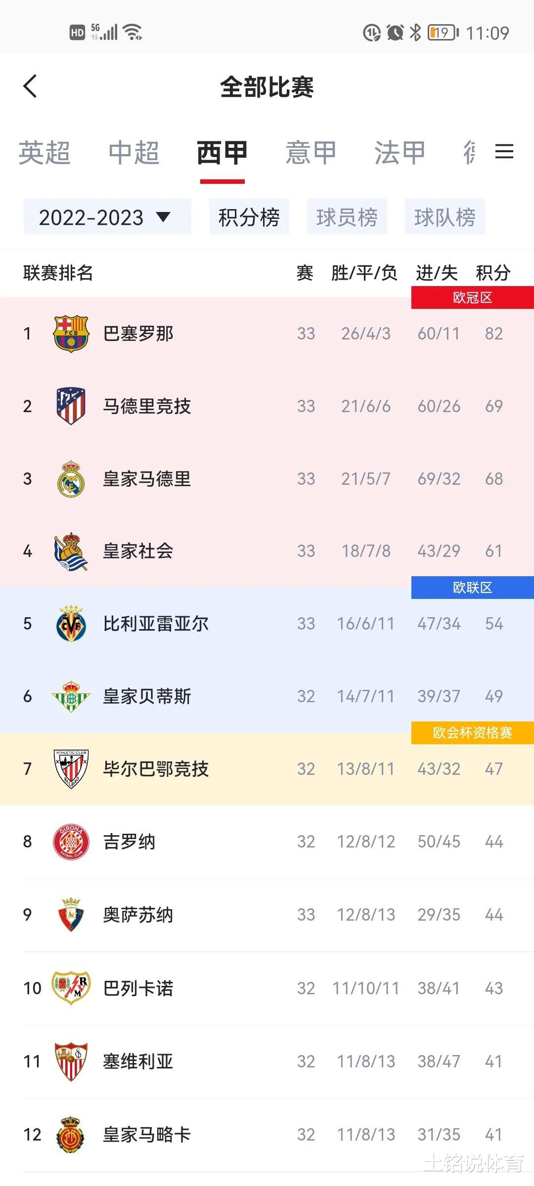 西甲的形势非常明朗,巴萨领先第二名马竞13分,基本锁定了冠军。皇马落后马竞一分位列第三,只要拿到欧冠冠军,皇马在联赛排第三还是第二都无所谓了。