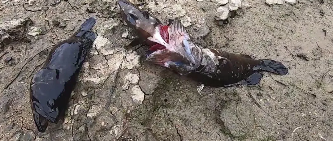 在河湾中,体型大一些的石斑鱼早就死了,只剩几条体型小一些的石斑鱼还活着,阿波在看到它们之后也是将它们捡起来放到桶里面。这些鱼在臭水里面待得时间太长了,浑身上下散发着浓浓的臭味,吃是肯定没法吃了。最后阿波将它们捡起来放生到另一条干净的河里面,希望它们能够活下去。