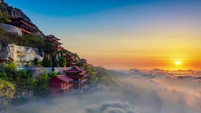 国家4A级景区,相传是纣王冬季采暖行宫遗址。东魏武定七年建朝阳寺,因依山而建,绝壁而生,飞檐凌空,遥望如空中楼阁,被称为悬空寺。