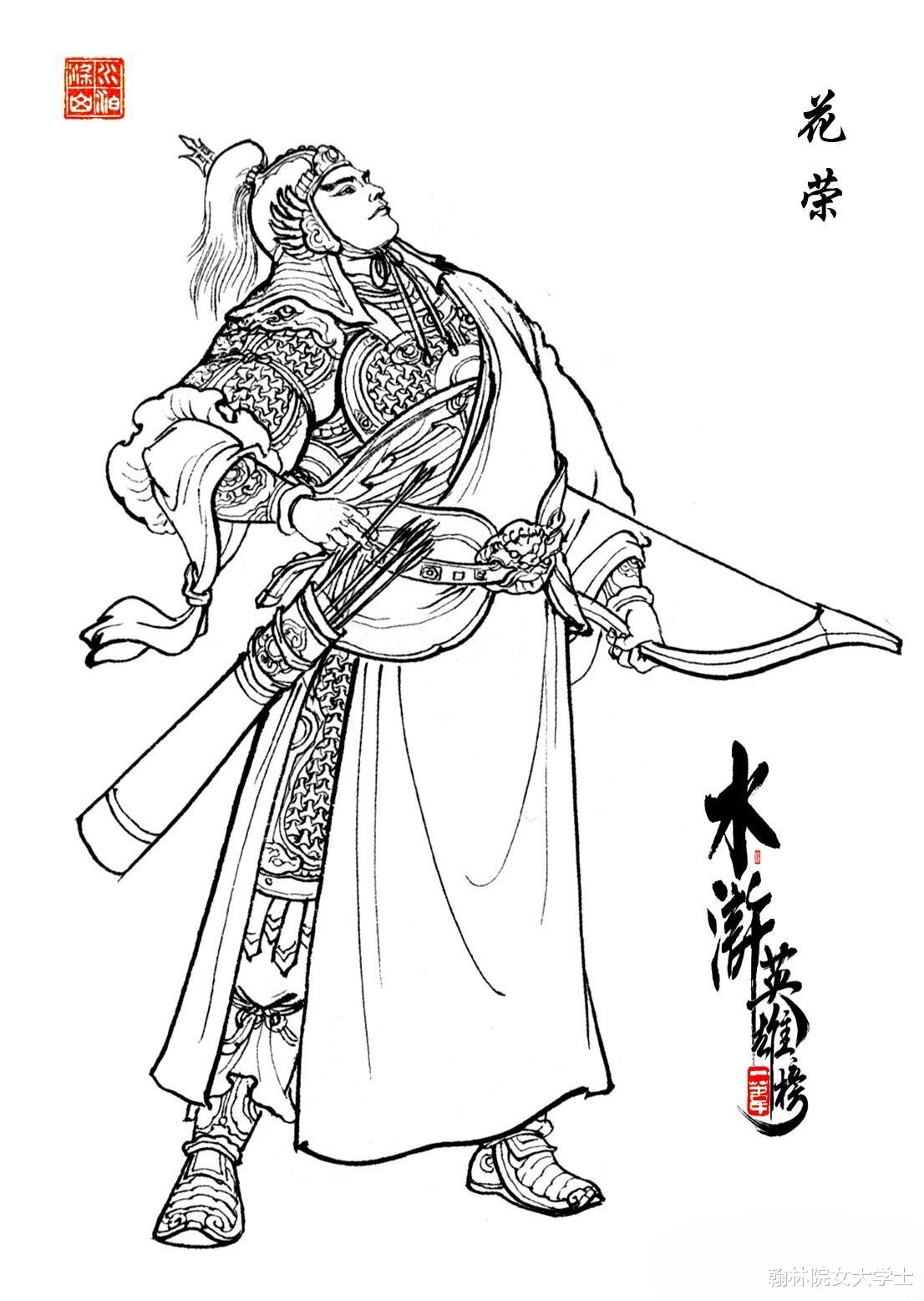 花荣在108将中排行第九,人称“小李广”,使一杆银枪,一张弓射遍天下无敌手。在用箭方面绝对是天赋,先后射死薛元辉,射杀李成副将,射中曾涂,射中琼妖纳延,射死董澄,射死王仁,射死王绩、晁中,射中邓元觉等,很多人员的死,都是因为被花荣射中,才被杀害的,由此可见远距离武器无敌啊。近战的话,可能就没那么厉害了。