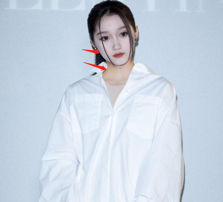 关晓彤当天穿着一件衬衫,却又在衬衫里面穿了一件肉色的打底衣,“土味”到了极致。又把脸涂的像衬衫一样白整个人看起来像被分割成了几个色块。