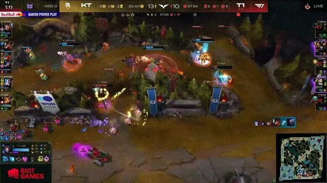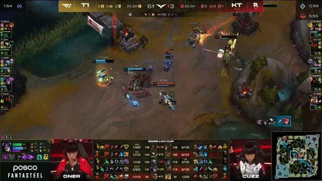 比赛第10分钟,Oner潘森残血拉扯拿下双杀,T1打出0换3大胜KT确立优势。