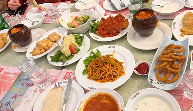 华梅西餐厅作为哈尔滨西餐的代表,拥有百年历史,是这座城市西餐文化的活化石。踏入餐厅,浓郁的俄式风格扑面而来,复古的吊灯、雕花的墙壁,仿佛将人拉回到了那个充满浪漫与神秘的沙俄时代。