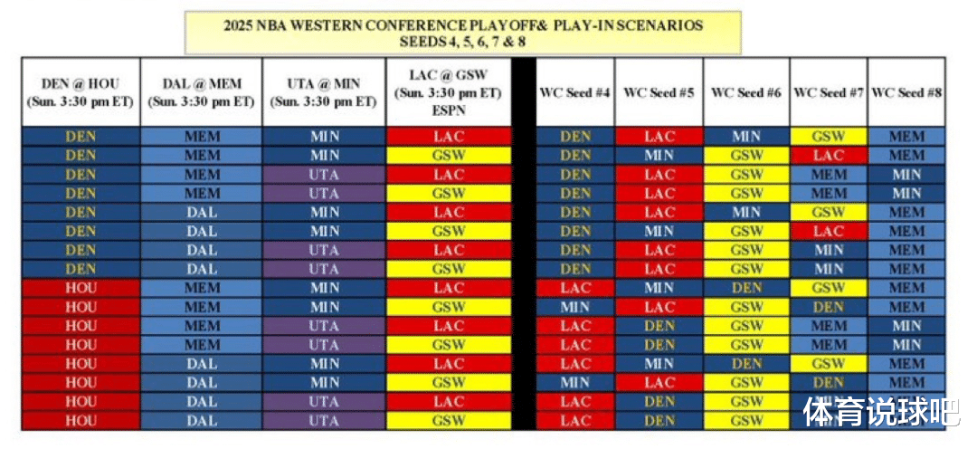 有关西部排名的分析文章应该有很多,但很多的分析是为了分析而分析,为了可能而可能,很多都不切实际。每种情况都列出来,大概是以下这张图这样的……