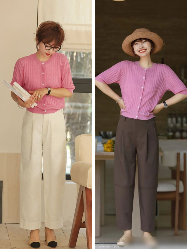 首先,中年女性选择粉色搭配最重要的一点就是要选择适合自己肤色的粉色,肤色偏白气色偏好,就可以大胆尝试一些比较鲜艳的饱和度高的颜色,比如荧光粉、亮黄色、亮绿色等等。