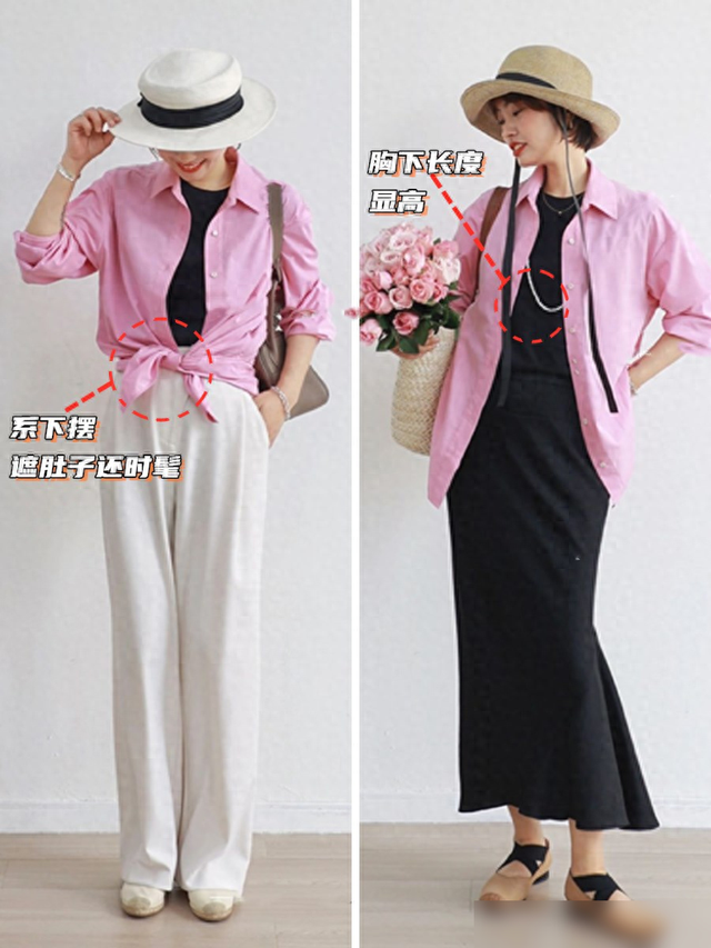 你只需要将其下摆简单塞进下面裤腿或者裙子里面,并且将上衣衣领翻起就能够减龄提升气质显得优雅知性又甜美可人,还能在一定程度上遮掩微肚子等小问题。