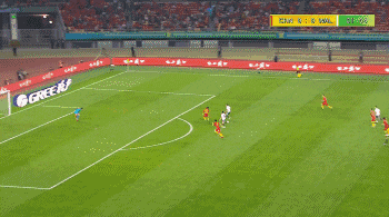 国足后场传球失误,沃克斯直传,贝尔梅开二度。