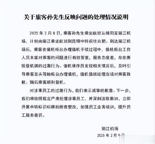 值机工作人员撕毁了乘客的登机牌始末2025年2月8日,一位乘客从云南丽江转机到昆明,在丽江转机时,他按照机场指示,一路走到了中转联程,递上登机牌并主动跟工作人员沟通,不过,工作人员却表示,这里并没有中转联程服务,需要乘客到到机场大厅二楼办理转机服务。