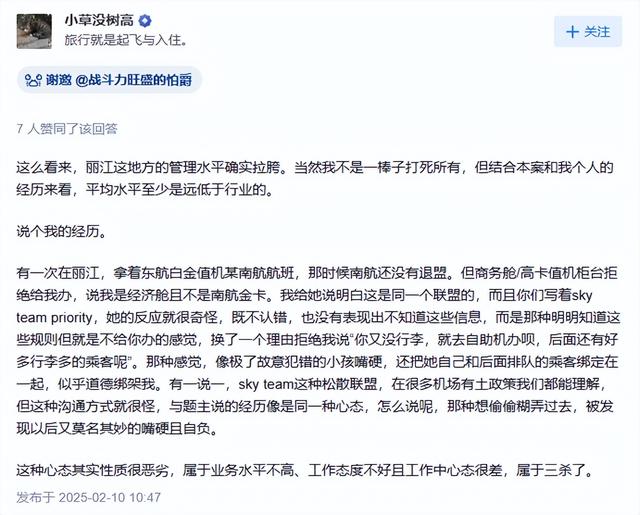 事件升级事情很快在网络发酵,网友惊奇的发现,曝光这件事的乘客并非一般人,而是在网络社交平台拥有众多粉丝的热门博主,另外,眼尖的网友还发现,这位乘客还是拥有尊贵卓越终身白金卡的会员。