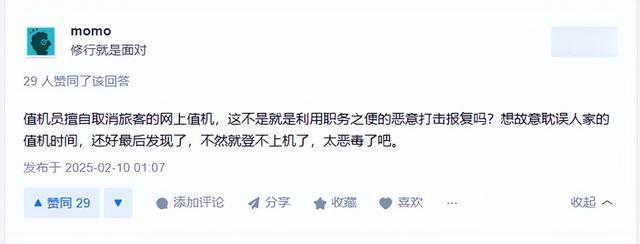 还有网友表示,值机员工擅自取消乘客的网上值机,这不就是利用职务之便,对乘客恶意打击报复吗?必须严惩!