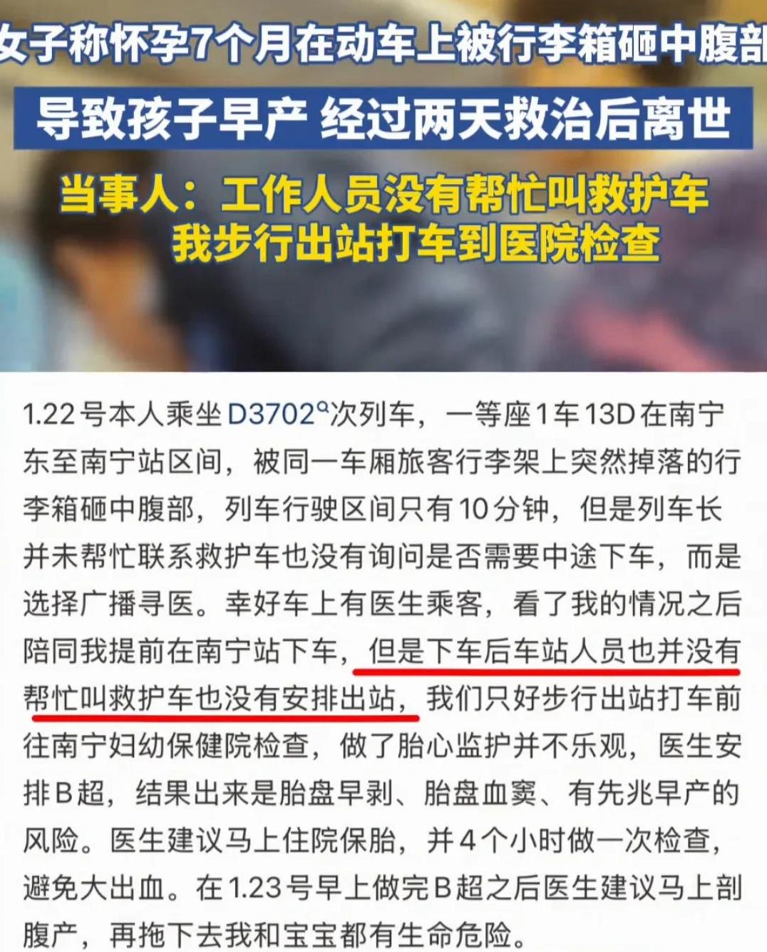 那位行李箱的主人在旁边不停道歉,但过了几分钟,列车长还没有出现,他们所得到的帮助仅仅是一条求医的广播。