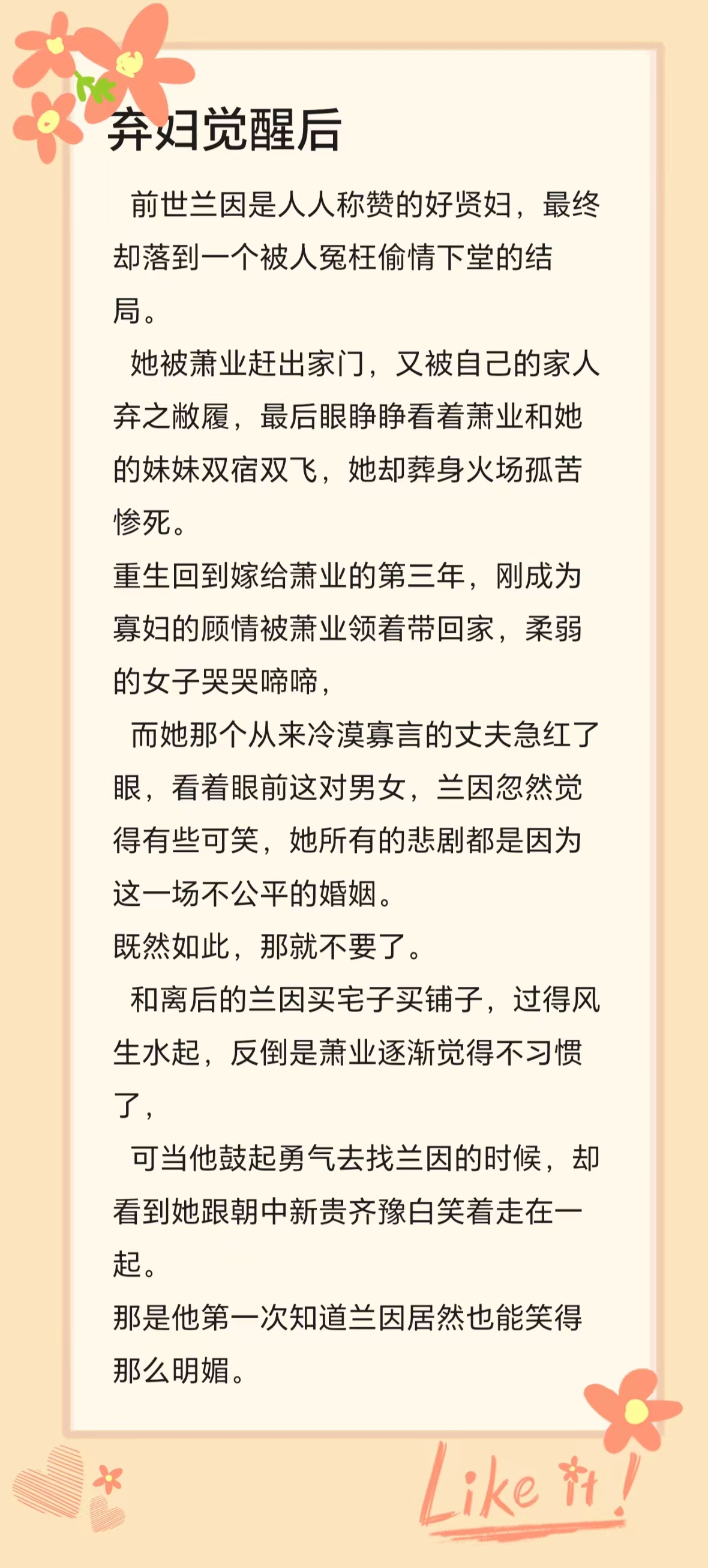 这是一篇双重生古言,看似先虐女主再追妻火葬场,