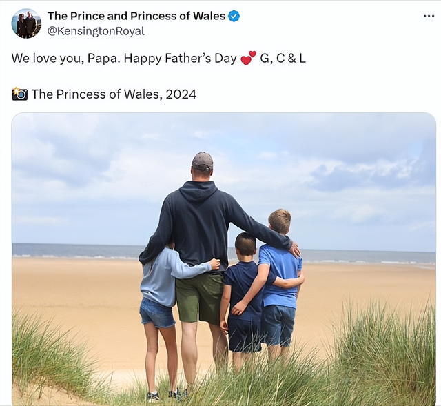 凯特王妃在父亲节当天发出新合影,确实是让人倍感温暖。凯特王妃如今恢复这么好,除了瘦一点之外,气色都非常好。