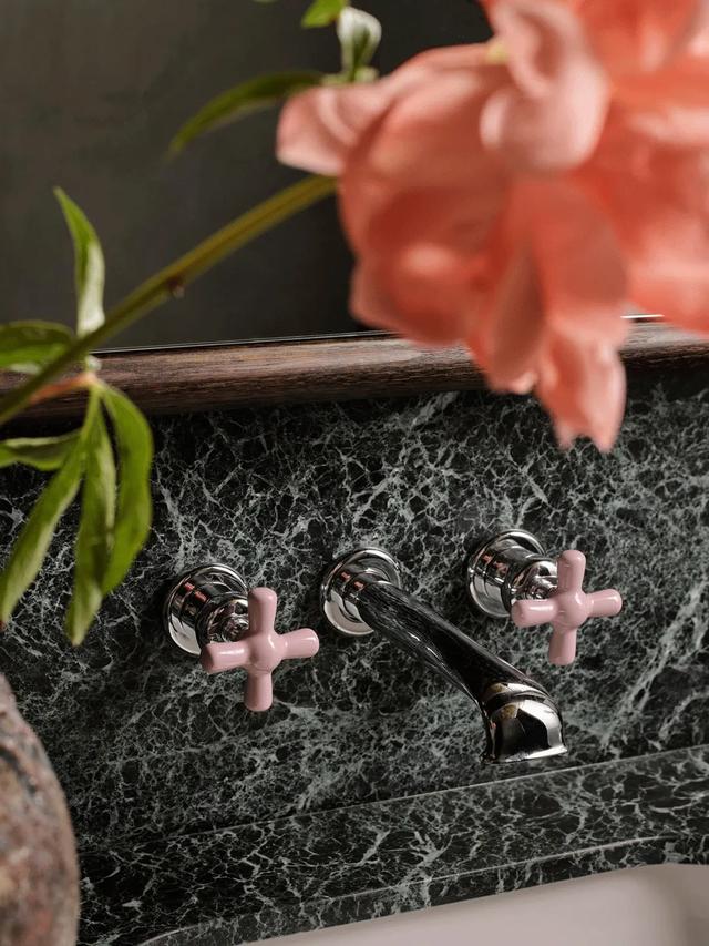 空间中多处采用了富有表现力的石材品种,当阳光照射到其镀金材料上时,会增添光彩。其中最奢华的当属化妆室的翠绿大理石壁龛搭配绿色细木工。