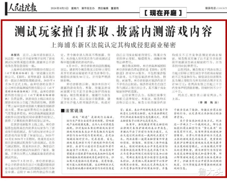 其中最为典型的莫过于《崩坏:星穹铁道》测试玩家陈某,参与游戏发行前的测试冰签署保密协议。测试期间多次进行偷录、偷摄,并向第三人披露测试内容,被米哈游影铁告上法院。