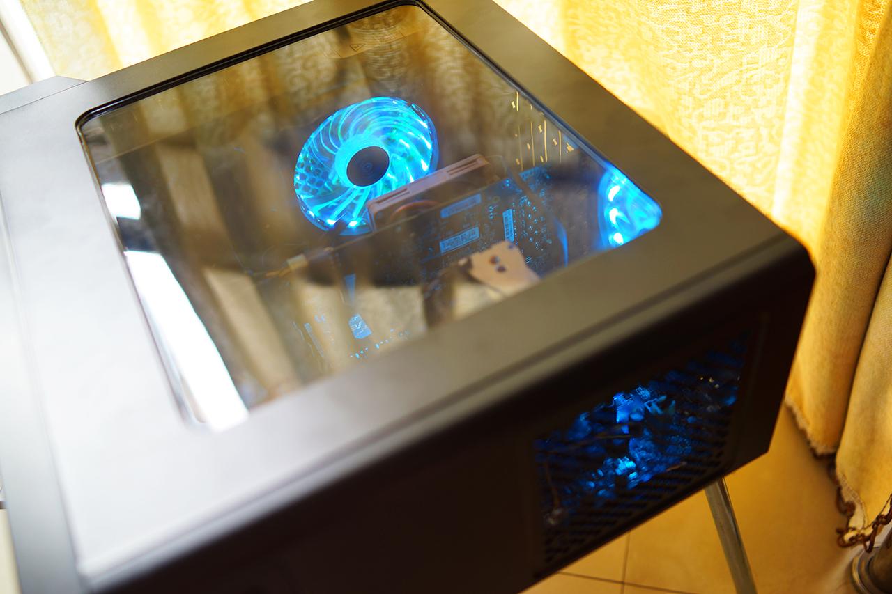 装好之后,给我的第一感觉就是漂亮,大水牛潘多拉Plus机箱把繁杂的线缆都隐藏在了背后,把简洁清爽的一面通过侧窗展现给我们,再配以七彩的LED灯光,给人的视觉感受是非常强烈的。