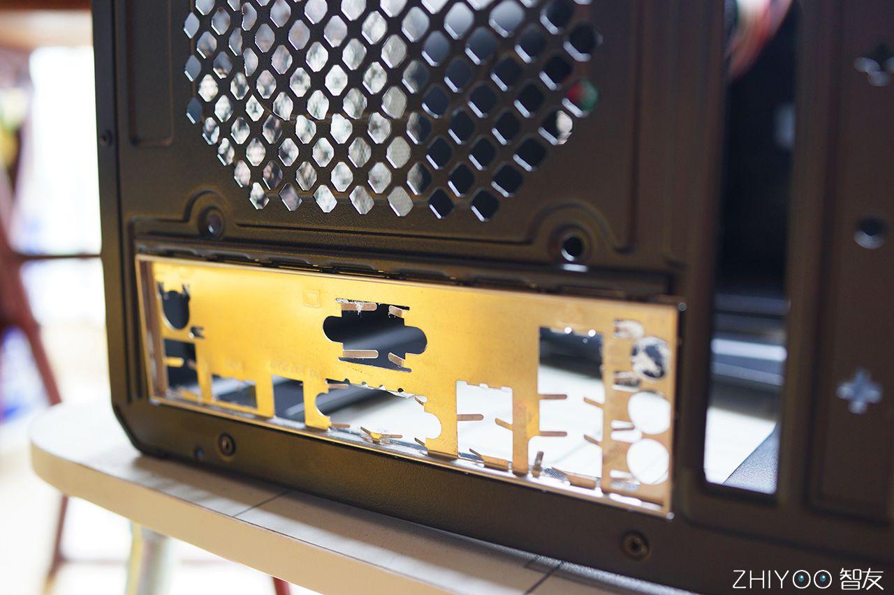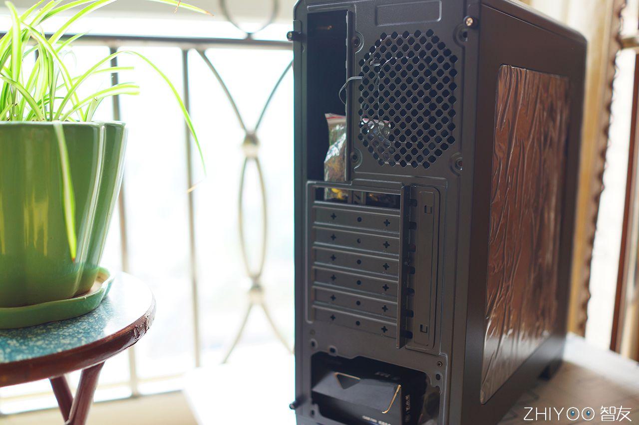 从背面的布局可以看出,它是采用电源下置的设计,和老式机箱有很大的区别。