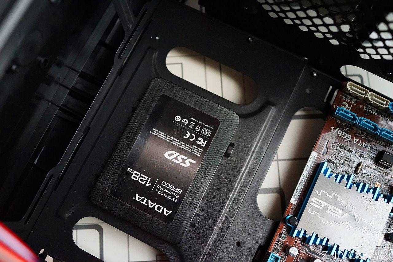 下一步就是安装SSD了,以前的老机箱没有专用SSD位,我还特意加装了一个2.5转3.5的托盘,这下就用不着了,机箱内有专用的2.5寸硬盘位,4颗螺丝轻松搞定。