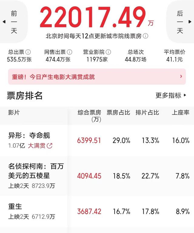 但是当《异形:夺命舰》在中国内地影院正式上映之后,第一天就成功拿到了4100多万人民币票房。
