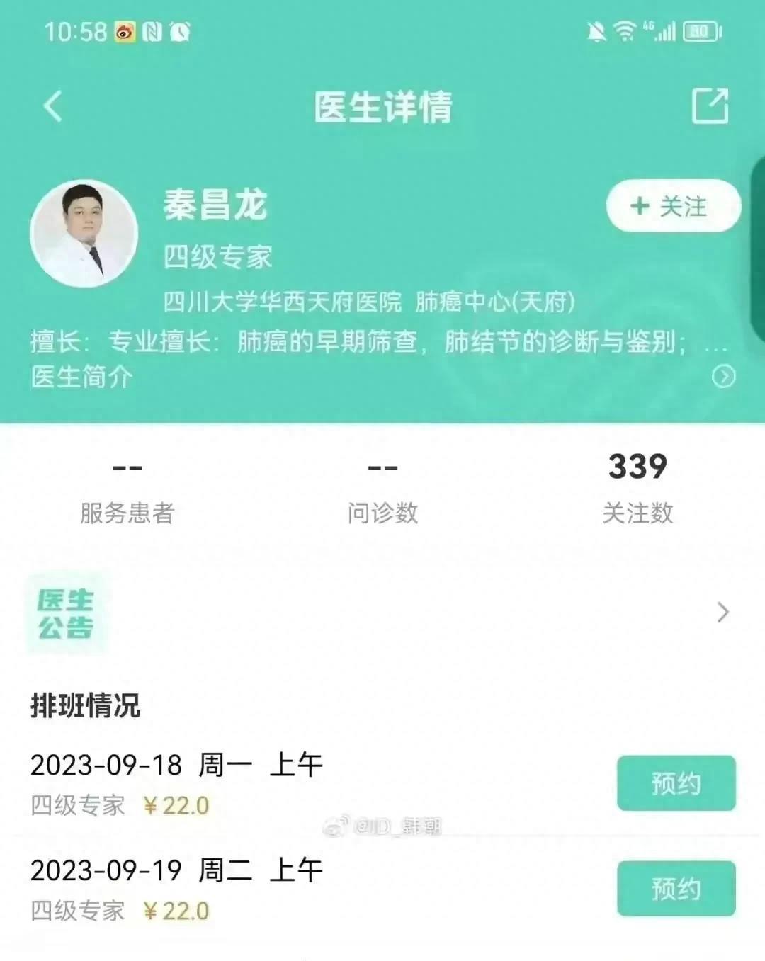 如果是秦医生发的,他大概率是不会还在医院里正常上班的。
