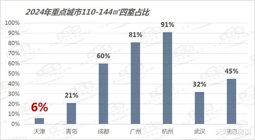 据365研究机构调查,2024年,天津楼市的【小四室】只占6%。