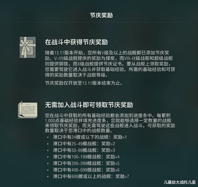 在肝通行证的途中,玩家们也顺道做完了扫雪活动的任务。在这个活动中,超级战舰、九级船和八级船都可以获得钢铁;十级船则会单独拿到一张可以直接兑换宝箱的节庆证书;七级船到四级船会获得数量不等的煤炭。而只要港口中的战舰越多,大家能在礼包中拿到的奖励就越多,也是比较划算的。