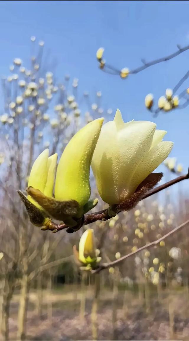 走近这株紫玉兰,仔细端详,能感受到它的生机与活力。花苞上挂着晶莹的露珠,在阳光的照耀下,宛如一颗颗璀璨的珍珠。每一片花瓣都蕴含着生命的力量,让人不禁期待它盛开时的美丽。此时此刻,心中没有了烦恼和压力,只有眼前这株即将绽放的紫玉兰,以及那份从心底油然而生的惬意。