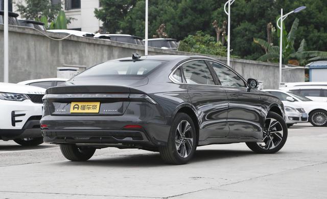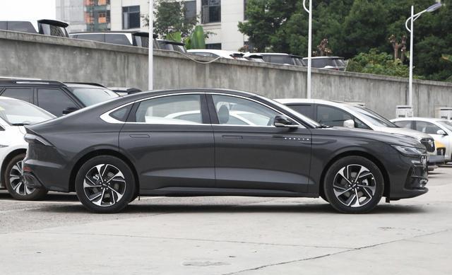 车身侧面简洁,后窗线末端上扬,动感轮圈强化比例感,整体协调。尾部时尚带商务风,后备箱延伸成小鸭尾,配维京战斧尾灯,点亮后辨识度极高。