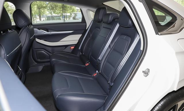 新车尺寸为长4975mm、宽1850mm、高1450mm,轴距2870mm。180cm乘客坐后排,头部空间4指,腿部超两拳。座椅软硬适中,悬挂偏软,过坑洼或减速带不颠簸,适合长途乘坐。
