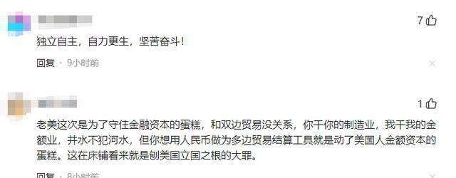 部分网民认为中国已具备自主发展能力,另一些人则指出美国的举动意在维护自身利益。尽管中美两国在经济领域本无直接冲突,但美国试图将中国资金纳入其结算体系的做法显然缺乏可行性。这种观点反映了对美国经济策略的质疑,认为其试图将中国纳入其经济体系的意图难以实现。