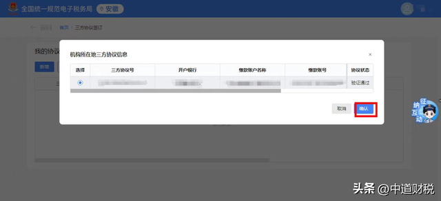 2.点击【查询机构所在地三方协议】,选择正确的三方协议信息并确认。