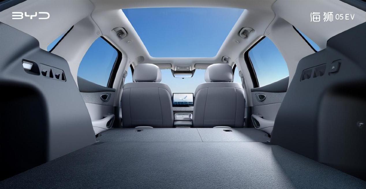 车尾有个波浪形尾灯,呼应海洋主题。还有个熏黑扰流板,看着挺运动。就是不知道实际空气动力学效果咋样,要是能省点电就更好了。尺寸是4520×1860×1630mm,跟元PLUS差不多。不算小了,但也不算特别大,停车应该还行。