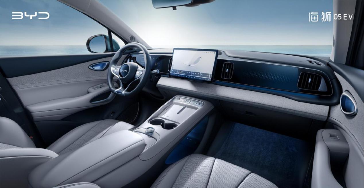 内饰搞了个海洋风,方向盘像海豚尾巴,挺有意思。不过开车时看着方向盘会不会想到海豚游泳希望别分心撞车。座舱是环抱式的,感觉像被海浪包围,挺舒服。不知道坐久了会不会晕车,毕竟不是真在海里。中控台用横线条和圆角出风口,看着挺简洁科技。就是不知道实际用起来方便不方便,按钮多了找起来也麻烦。