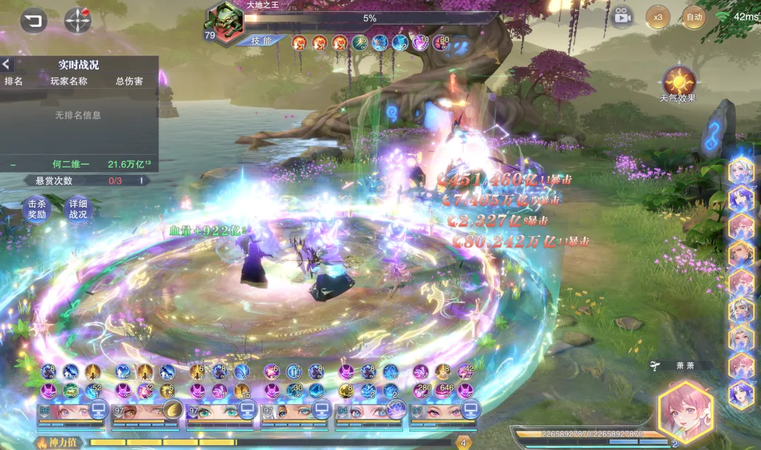 接着我们就用SP修三的常规双控三辅阵容来打,首先SP千道流阵容的平均伤害约为1500万亿¹²。