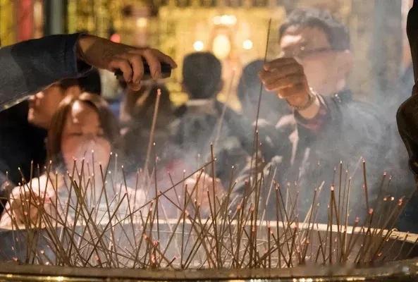 到了午牌时分,香客越聚越多,从大殿到藏经楼,从七佛塔到玲珑岩,处处香烟袅袅,只烧得天空中黑烟滚滚,连太阳也看不清啦!