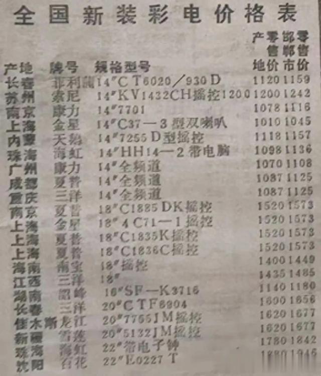 看了八十年代商场电视机价格单,才知道那时候东西有多贵