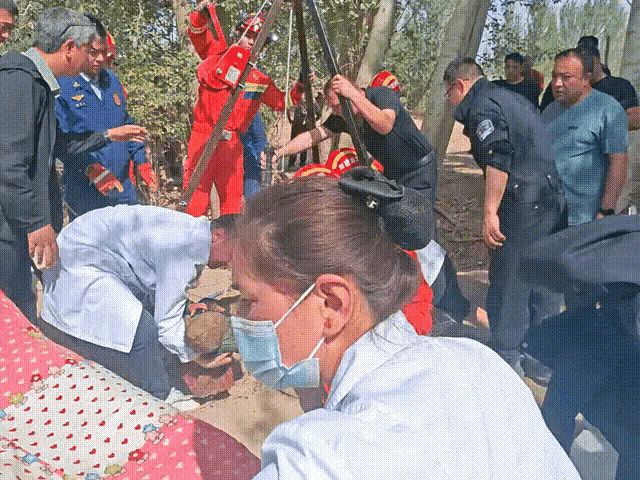 视频画面中,很多村民都着急了,大家也是各抒己见,值得注意的是,在这次营救中,医生也随时待命,等待孩子被救出,立即进行医治。