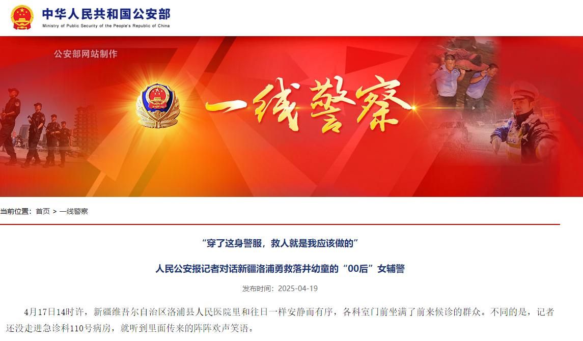4月16日,在新疆洛浦县,00后女警下到了深40米的水井中救了一个小孩子,引起了很多人的关注,现在女警的身份曝光了,4月17日,公安部也介入发声。