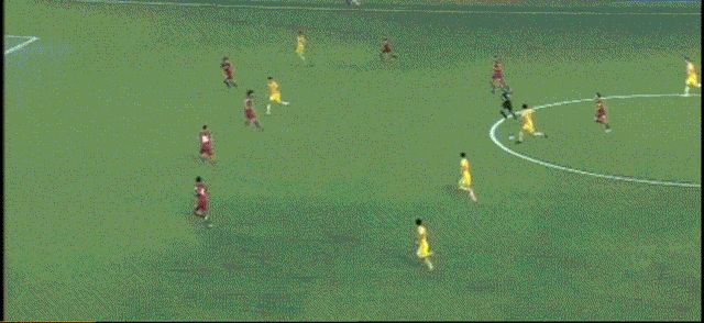 国足的殊死一搏终于在比赛第74分钟得到了回报。如上图所示,武磊由中场开始连续持球向前突破,随后用一脚精准的长传转移找到了左路积极插上的姜志鹏。姜志鹏得球后稍作调整,随后送出了一脚球速极快的低平传中,中路的肖智机敏包抄到位铲射破门。