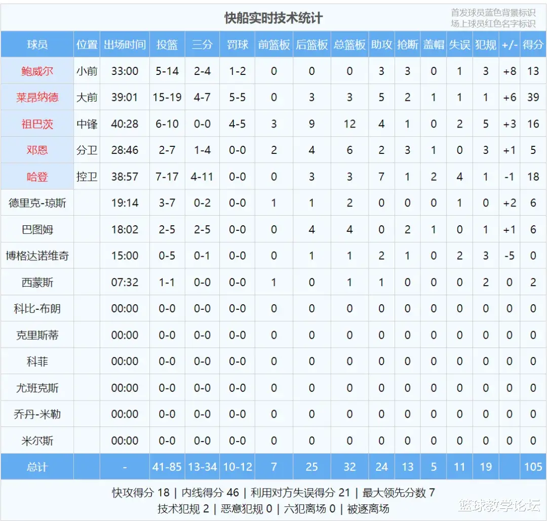 戈登无人防守的情况下,空篮扣飞了!末节1分30秒,铁了一整场的鲍威尔,命中大心脏三分!接下来变成伦纳德表演时间,先是中距离命中,接着抢断约基奇,杀死比赛。全场结束,快船105-102险胜掘金,总比分追成1比1平。